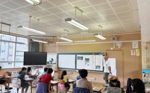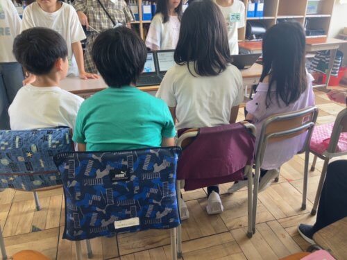 5年生は体験したことをパソコンを使って発表し、4年生は間もなく行く自然教室に向けて真剣な顔でお話を聞いていました。